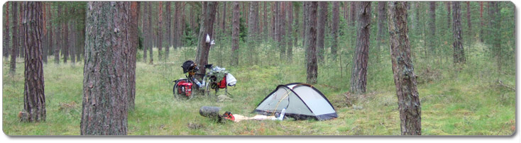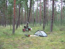So bin ich dann kurz vor Ahus einem Trampelpfad in den Wald hinein gefolgt und habe dort an einer geeigneten Stelle mein Zelt aufgeschlagen. Jetzt liege ich also mitten im Wald, hoere in grosser Entfernung eine stark befahrene Strasse und sehe ansonsten keine Menschenseele.