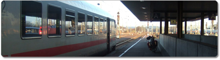 Die Deutsche Bahn zeigt sich bisher von ihrer besten Seite. Nicht nur, dass die beiden bisherigen Verbindungen puenktlich auf die Minute fuhren. Auch die Zuege sind neu, was das Reisen mit dem Fahrrad sehr erleichtert. Die Einstiege sind nieder und so breit, dass ich die Taschen beim Einsteigen nicht abnehmen muss.